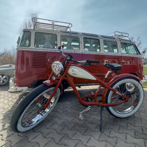 Unser neues Volkswagen Bulli Bike – designed by MC E-Bike – vereint modernes E-Bike-Feeling mit dem historischen Design des Volkswagen Bulli T1 – und das alles offiziell lizenziert von Volkswagen.