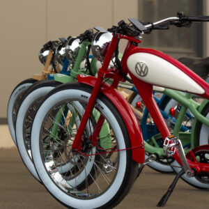 Bereit, die perfekte Symbiose aus zwei Welten der Mobilität zu erleben? Unser neues Volkswagen Bulli Bike – designed by MC E-Bike – vereint modernes E-Bike-Feeling mit dem historischen Design des Volkswagen Bulli T1. Das Bike ist offiziell lizenziert von Volkswagen. Für alle, die das Besondere schätzen. Schnell sein lohnt sich!
